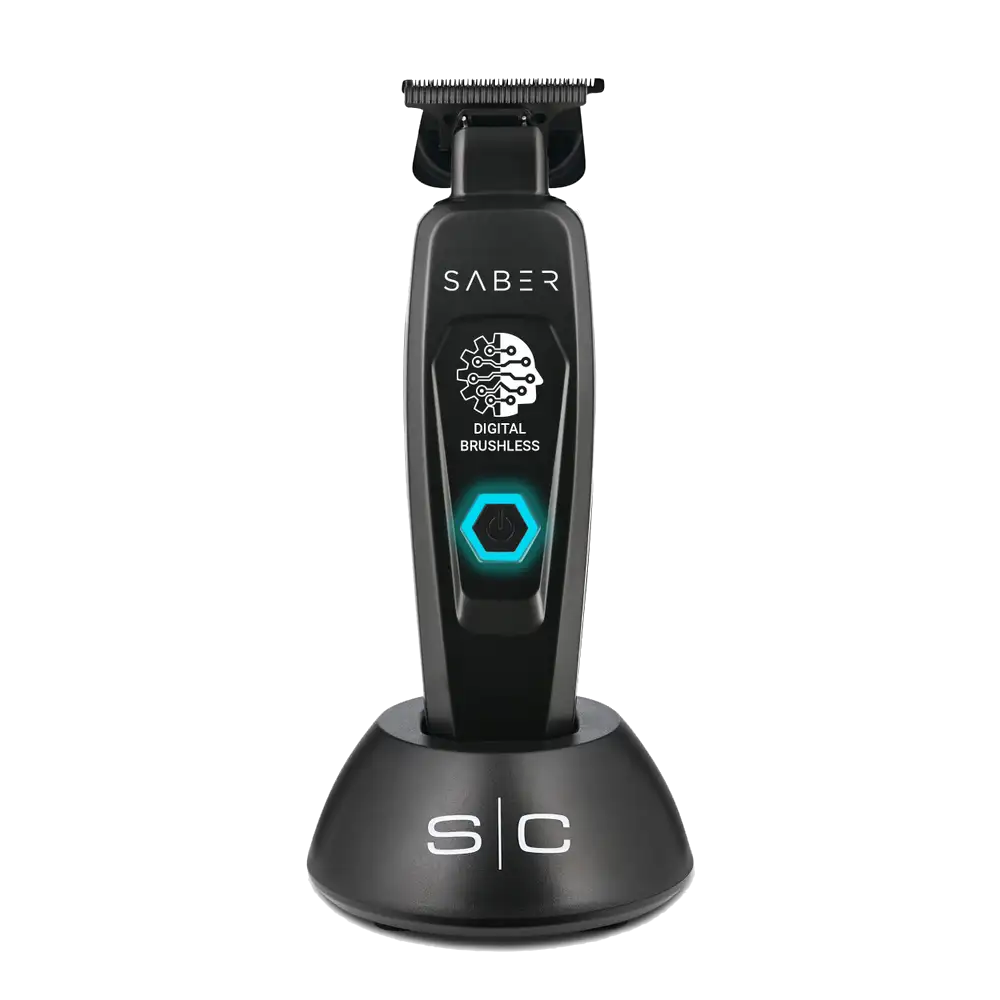 Découvrez la trimmer Saber, l’alliance parfaite d’un moteur digital brushless et d’un design full metal raffiné. Son moteur à couple élevé tourne à 7 500 tr/min pour un rasage ultra-précis, silencieux et sans surchauffe. Grâce à sa silhouette slender et son corps entièrement métallique finition or, noir ou blanche, la tondeuse offre une prise en main optimale et une agilité inégalée. Idéal pour tracer des lignes laser, réaliser des contours nets ou enlever de la masse, elle s’adapte à tous les styles, en salon comme en déplacement, filaire ou sans fil.